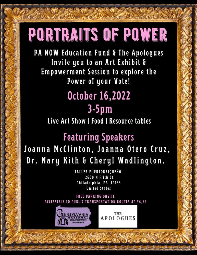 PA NOW & The Apologues invite you to an Interactive Community Mural Event centered on “My Body, My Choice” and the POWER OF YOUR VOTE! Painting Our Way to the PollsTODAY: Sunday, October 23, 20222:00 PM – 4:00 PMCrane Community Center1001 Vine Street Philadelphia, PA 19107https://www.eventbrite.com/e/painting-our-way-to-the-polls-tickets-440743574897?aff=ebdssbeac About This Event “Painting Our Path to the Polls”…